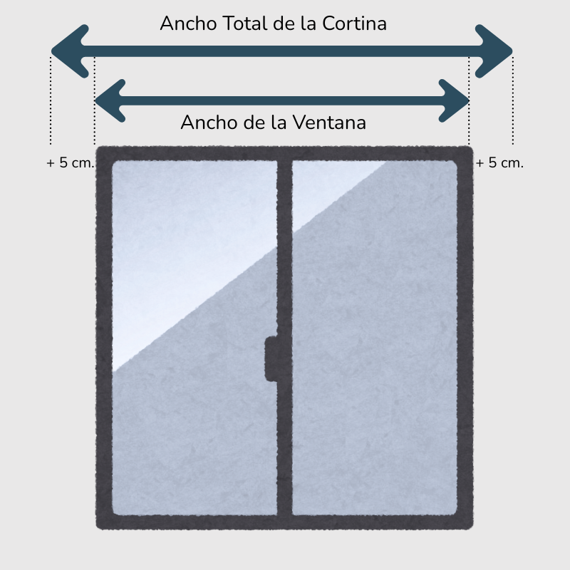 - Si hay espacios libres de ambos lados, medí el ancho total de marco a marco y agregale 5cm. de cada lado. De este modo la cortina cubrirá perfectamente todo el perímetro de la ventana.